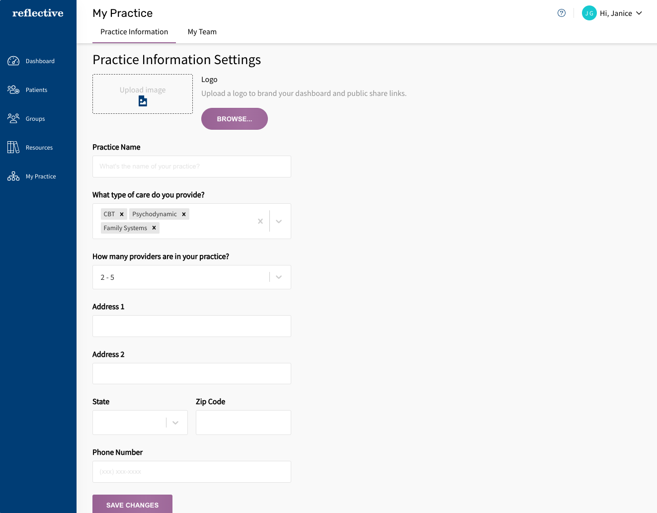 Logo: Upload your practice logo. Practice logo appears on public share links, such as invite links, and public assignment links.